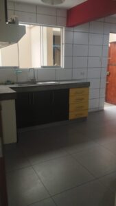 La cocina es otro de sus grandes atractivos: amplia, iluminada, con un moderno tablero de granito, muebles altos y bajos que brindan todo el espacio necesario para almacenamiento y comodidad al cocinar. Justo al lado se encuentra la zona de lavandería, el cuarto y baño de servicio, así como una puerta secundaria que conecta directamente con la zona interna del condominio, facilitando el acceso al estacionamiento y servicios.